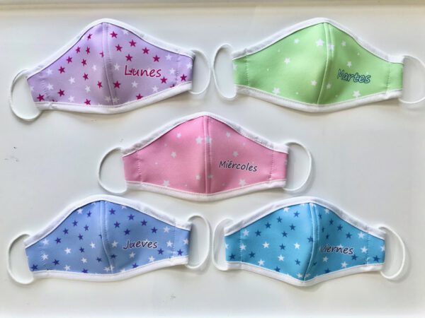 Lote de 5 mascarillas con los días de la semana ideal para el colegio.